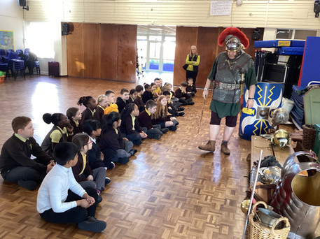 3HW had an exciting day today when a Roman came to visit Wodensfield. They found out many facts and took part in Roman soldier training. They got to handle real-life armour, weapons and soldier kit. It was a fantastic day and thoroughly enjoyed by all.